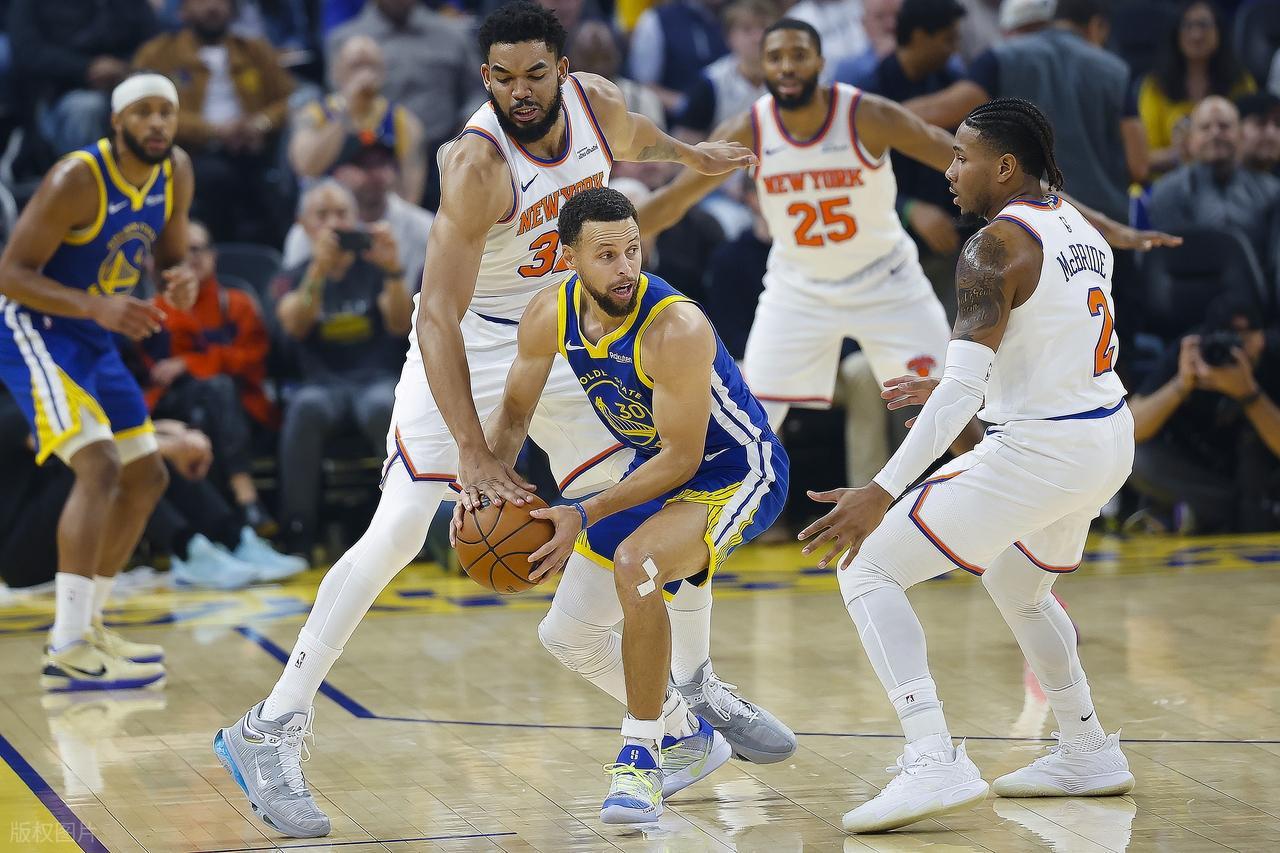 第二节双方轮换阵容阶段,勇士继续追分势头,10-5以后追平。唐斯篮下强硬打进止血,梅尔顿三分反超。但勇士篮板球被尼克斯抢爆了,双方陷入艰苦拉锯战,波杰姆斯基也开始发威,布里奇斯三分又追平。然后双方又开始互相罚球,打得是难解难分,巴特勒篮下吃饼打进,半场结束勇士62-59领先3分。